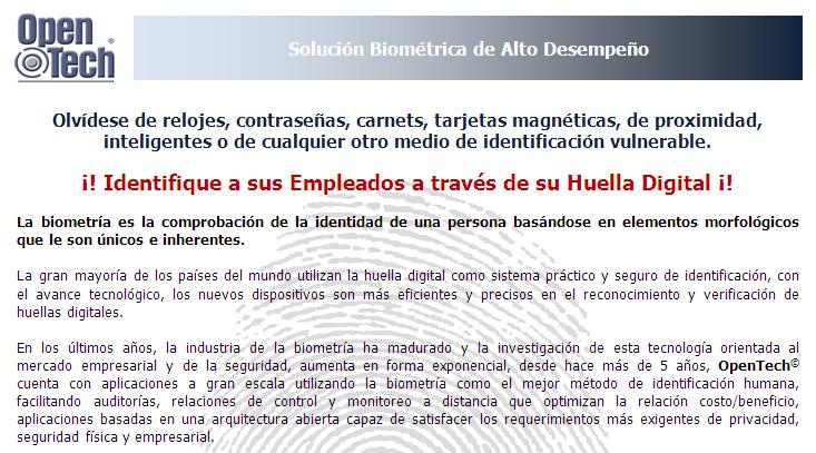 OpenManager®, TimeManager®, GateManager®, IdManager® y el logotipo OpenTech® son marcas registradas de Open Technology de México